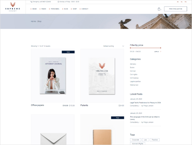 A modern theme designed for all law firms and legal professionals. SupremeCourt.